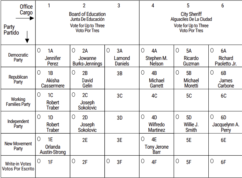 There is a race for City Clerk between Democrat Michael Smart and Republican Deborah Reyes-Quinones. Smart is also on the Independent ballot line.